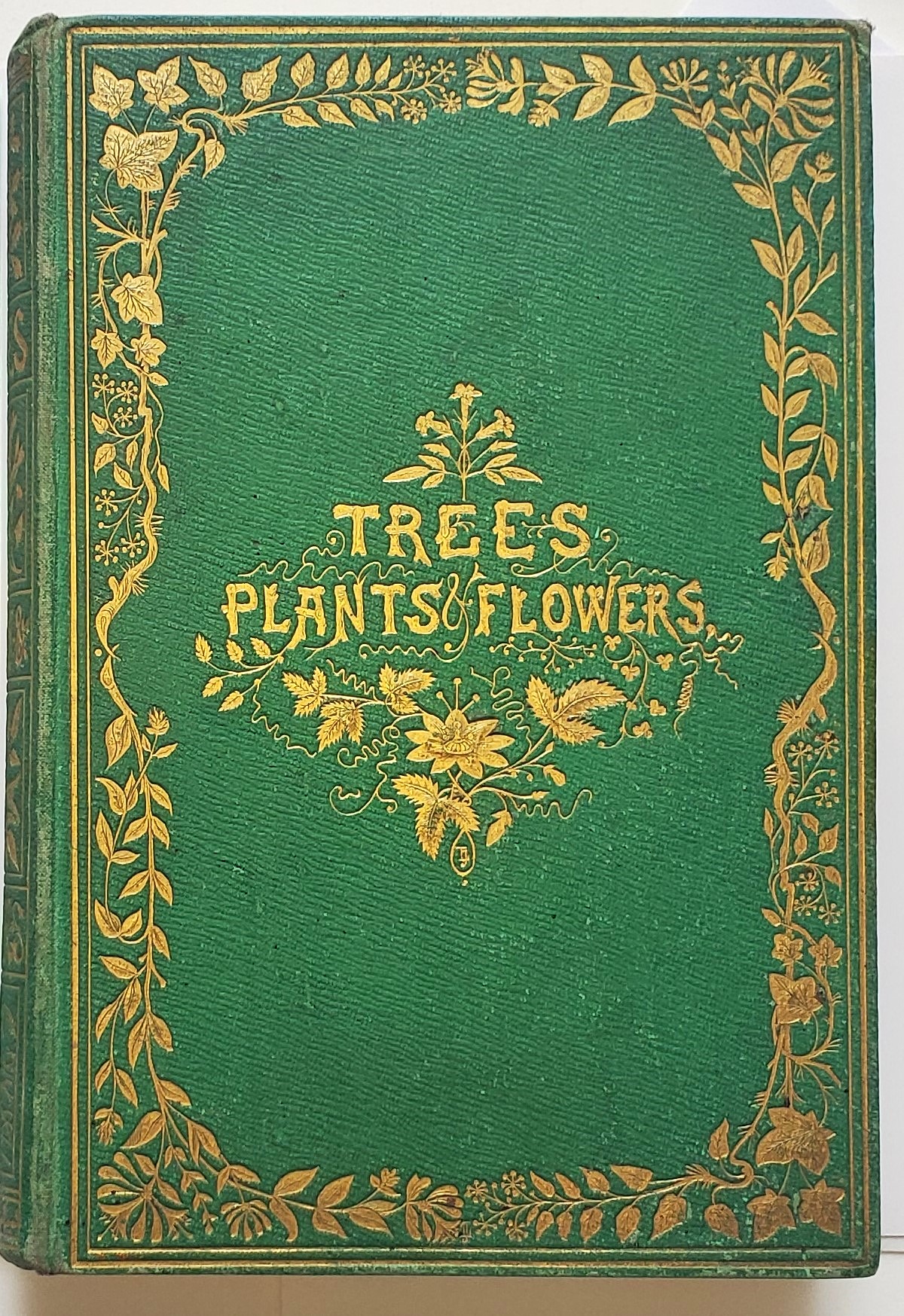 The Winterthur has created a bookmark with common shades of arsenical cloth bindings and arsenical paper. They offer this bookmark for free upon request, printed by the institution to ensure colour accuracy. This in conjunction with other trends can help in the identification of emerald green. Through their testing the Winterthur has also developed an Arsenical Books Database containing books that they, other institutions, and private collectors have found to contain arsenic. From this database the Winterthur was able to establish certain trends common among arsenical bookcloth bindings. The first clue is the bright green colour of the cloth binding often with gold or blind stamped decoration and gilt edges. The spine can also appear brown as it is more exposed to air and oxidizes over time. These books were mostly printed in Britain or North America primarily between the 1840s and the 1860s. The books range in size and sometimes have embossed patterns on the cloth. These guidelines are helpful but come with the understanding that books may fall outside these generalizations. For example, excess bookcloth may have been stored by binders and used on books published outside this twenty-year window. The identification of arsenic in paper bindings is a bit more difficult. They have found arsenic in paper from 1816 to 1899, in various shades of green, on matte and glazed paper, both plain or printed. The Winterthur does still provide some examples of emerald green on paper on its bookmark. The bookmark together with the general trends found in books with arsenic bindings allows for some level of certainty that can help an institution with planning. In our case, we found three books in our collection that likely contain arsenic in their bookcloth when combining the bookmark, the database, and the overall trends. All three books were printed in London between 1854 and 1859. They all also have some level of gilt decoration on the covers. These match the general trends we see in emerald green bindings. Another edition of Trees, Plants, and Flowers is also already in the Poison Book Project database. While not as certain as testing, erring on the side of caution allows us to ensure the safety of patrons and staff through the application of additional standards of handling and care.